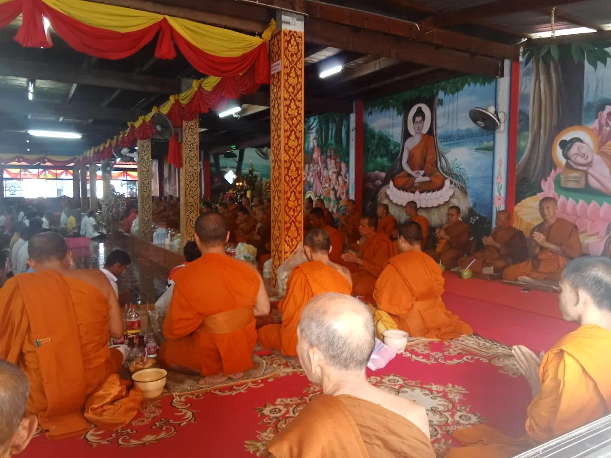 - ภายในวัด: มีบรรยากาศที่เปี่ยมไปด้วยศรัทธา จากภาพจะเห็นกิจกรรมต่างๆ ที่จัดขึ้นภายในวัด เช่น พิธีทางศาสนาที่มีพระสงฆ์จำนวนมากเข้าร่วม, การรวมตัวของชาวบ้านทั้งเด็กและผู้ใหญ่เพื่อทำบุญในวันสำคัญ[4] แสดงให้เห็นถึงบทบาทของวัดในการเป็นศูนย์กลางของชุมชน